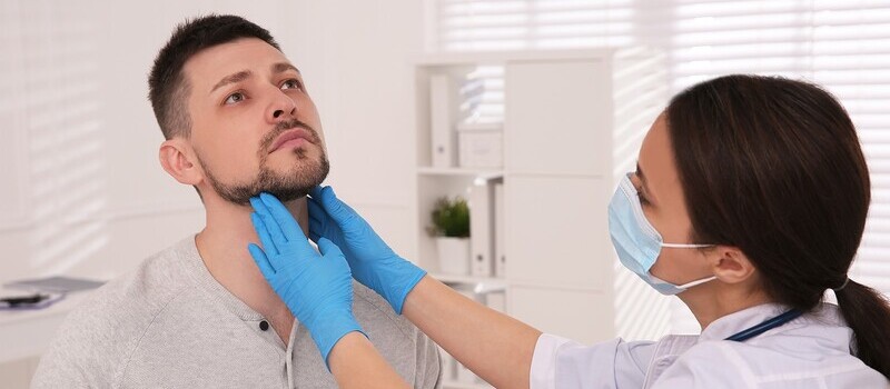- Увеличенная щитовидная железа, иногда называемая зобом, которая может проявляться в виде припухлости у основания шеи