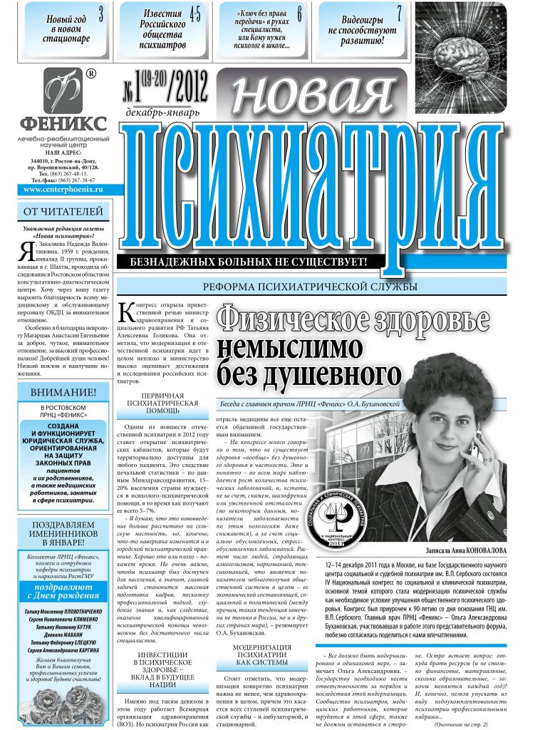 Read more«Новая психиатрия», выпуск №2, февраль 2012