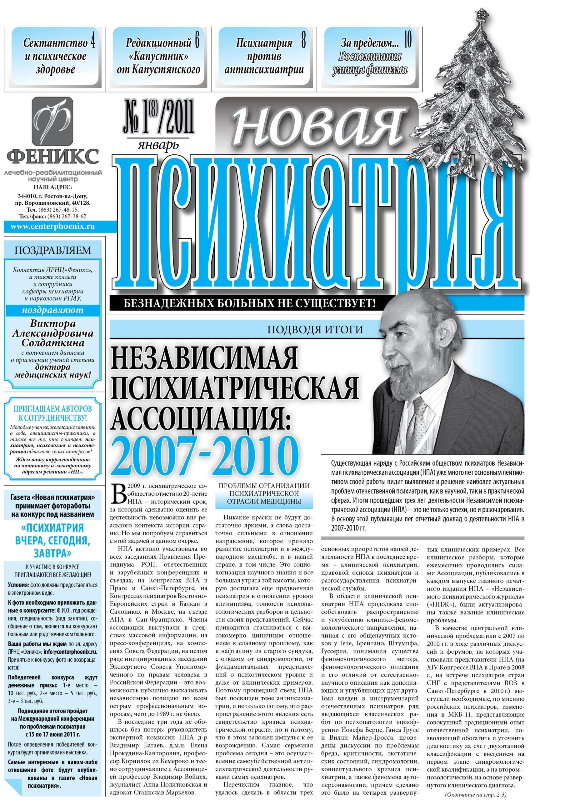 Read more«Новая психиатрия», выпуск №1, январь 2011