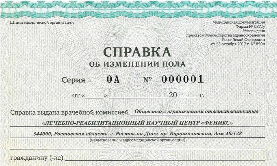 На снимке: такую справку в лечебно-реабилитационном центре «Феникс» выдают пациентам, которым операция по смене пола действительна необходима; желание совершить этот шаг вызвано разными психическими расстройствами.