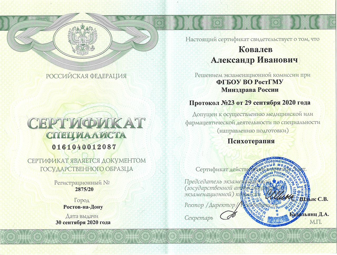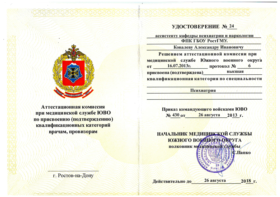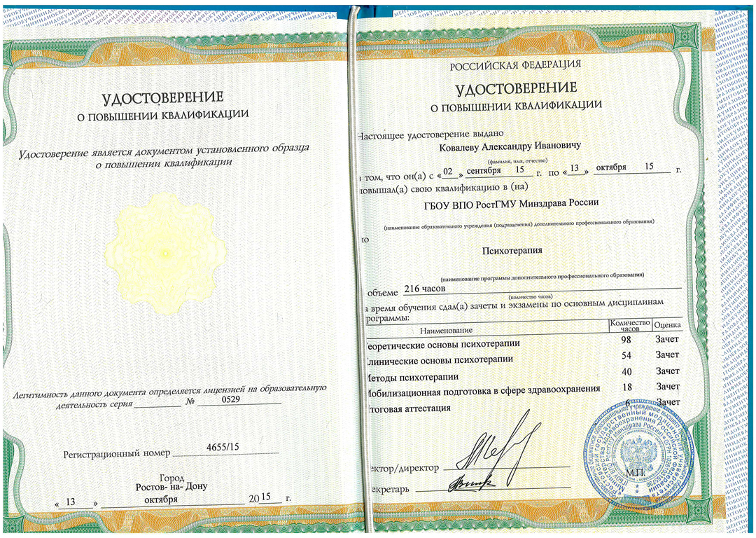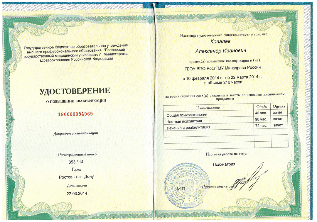 Александр Иванович — врач высшей категории, член Российского общества Психиатров и член Профессиональной Медицинской Психотерапевтической Ассоциации. Ведет активную преподавательскую и научную деятельность на кафедре психиатрии и наркологии Ростовского медицинского университета.